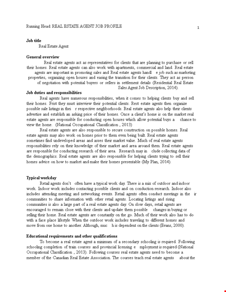 Running Head Real Estate Job Description