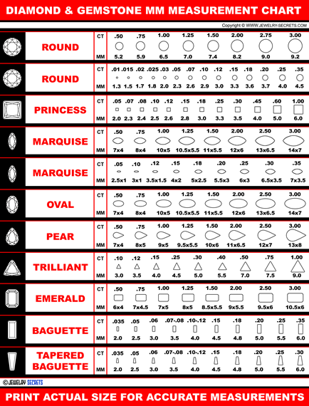 Don't let inaccurate measurements and value estimates hamper your jewelry business. Download our diamond size chart now in PDF format and ensure consistent and precise measurement of your diamonds. Print out the chart and use it as a handy reference when evaluating diamonds against your quality standards.