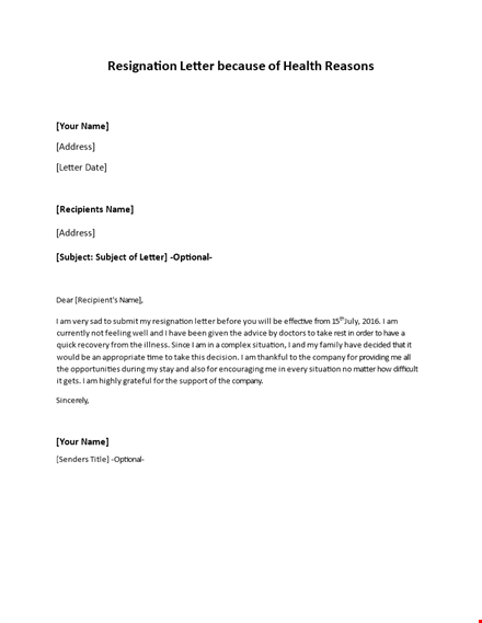 - Subject: Clearly state the subject of the letter as "Resignation Letter with Health Reason."